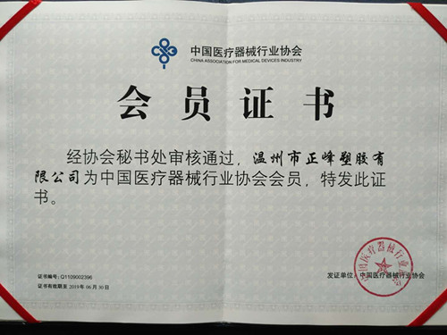 熱烈祝賀正峰塑膠順利通過審核,正式成為中國醫(yī)療器械行業(yè)協(xié)會會員。